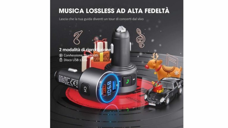 Grazie a questo piccolo ma pratico accessorio, si possono riprodurre i propri brani preferiti da Amazon Music, Apple Music, Deezer, Spotify, TuneIn direttamente in auto. Il procedimento è immediato e sappiate che l’audio uscirà dalle casse dell’abitacolo. Il trasmettitore si connette via Bluetooth 5.0 e la sua qualità è ineccepibile. Inoltre, è perfettamente compatibile con Mac, Windows, Android.