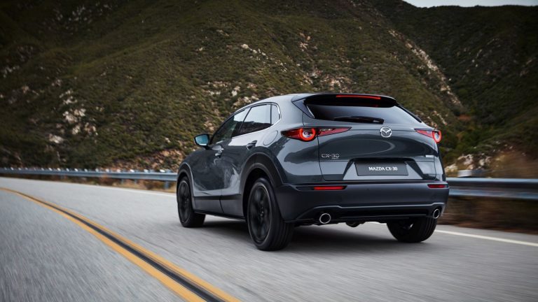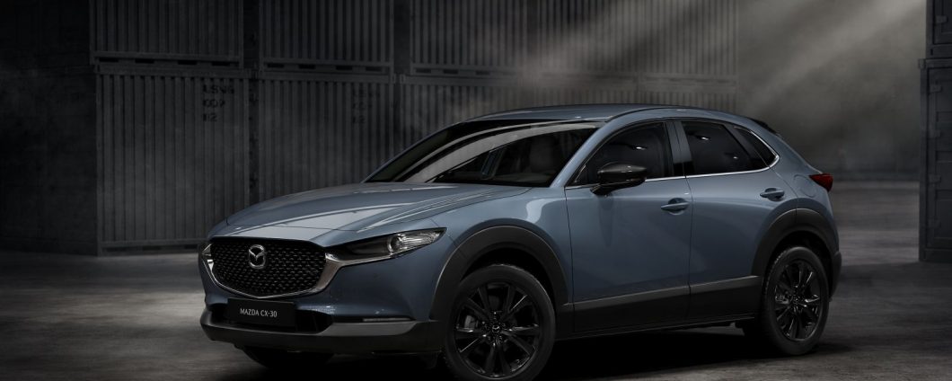 Tra le novità della nuova Mazda CX-30 Model Year 2022 figura il nuovo colore Platinum Quartz per la carrozzeria, ma soprattutto la versione speciale Homura con la dotazione di serie completa di cerchi in lega da 18 pollici di colore nero lucido, in tinta con le calotte degli specchietti retrovisori esterni e la calandra, più il portellone posteriore elettrico le cuciture a contrasto di colore rosso per l’abitacolo.