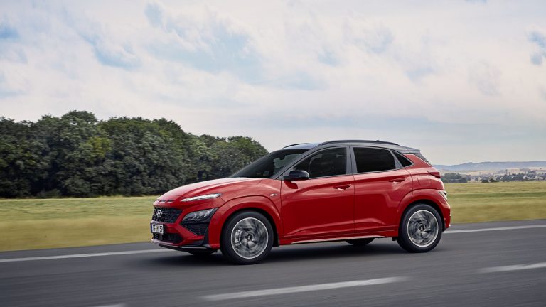 La gamma della nuova Hyundai Kona comprende anche l’allestimento N Line con il frontale specifico, senza dimenticare altre caratteristiche peculiari come i paraurti dedicati, i passaruota e le minigonne laterali in tinta con la carrozzeria, il doppio terminale di scarico, gli specifici cerchi in lega da 18 pollici di diametro, i sedili sportivi con i dettagli di colore rosso e la pedaliera in metallo. Anche il design della confermata Kona Electric è specifico, con i cerchi in lega aerodinamici da 17 pollici di diametro, il frontale dedicato, le minigonne laterali e i passaruota anch’essi in tinta con la carrozzeria, più il tetto a contrasto di colore Phantom Black o Chalk White.