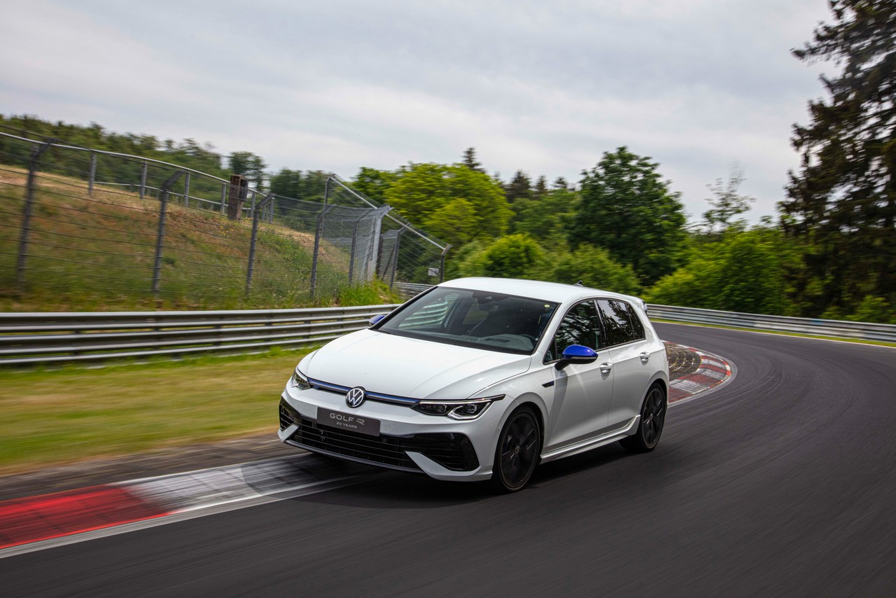 Notevoli le emozioni sonore. È possibile gustare con una buona intensità la voce del motore anche in fase di accensione, selezionando l’Emotion Start, che eleva il regime iniziale fino a 2.500 giri. Ottima l’efficienza del cambio a doppia frizione DSG, offerto di serie. Grande la reattività ai comandi dell’acceleratore. L’assetto è ben calibrato, per offrire delle dinamiche di marcia molto efficaci. Il tempo sul giro messo a segno sulla Nordschleife del Nurburgring (7’47″31) pone la nuova Volkswagen Golf R 20 Years al vertice della sua famiglia, migliorando di quattro secondi il crono della precedente R. Il design specifico della carrozzeria e le finiture decorative interne di alta qualità in vero carbonio completano al meglio il pacchetto.